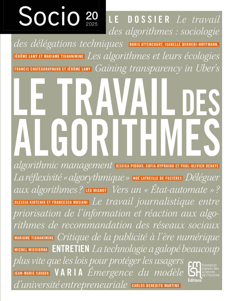 Les algorithmes font depuis quelques années l'objet d’études qui interrogent les manières dont ils changent nos modes de vie et de production. Toutefois, la question de ce qu’ils font directement au travail reste peu étudiée et appréhendée sous le prisme de la délégation technique qui ne cesse pourtant de croître. L'objectif de ce numéro est de compenser ce manque, à travers des contributions rendant compte de ce que les algorithmes font au travail, des conséquences de la délégation technique dans l’organisation des activités salariées, ou encore des modalités politiques des algorithmes dans le travail. Les recherches composant ce numéro s’appuient sur des terrains et analyses étudiant des secteurs et milieux aussi divers que ceux de la médecine, de l’industrie musicale, du logiciel, de l’État, du journalisme ou de l’économie à la demande.